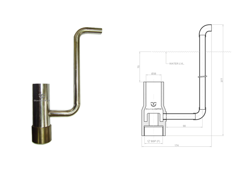 • Насадка "Бублер" - уровнезависимая, поэтому при проектировании и монтаже необходимо учитывать ее конструктивные особенности и обеспечивать постоянный заданный уровень воды в чаше фонтана.