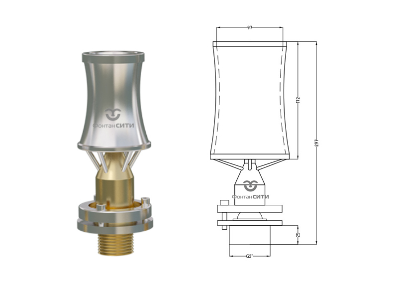 Насадка предназначена для формирования одиночных пенных струй пирамидальной формы. Малая производительность при хорошем визуальном эффекте делает фонтанную насадку Каскад одной из самых распространенных. Плотная пенная струя насадки украсит любой городской или интерьерный фонтан.