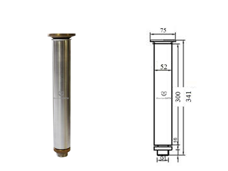 Данная насадка монтируется на вертикальный закладной элемент (опорная стойка фонтанной насадки) из нержавеющей стали. Конструкция насадки не имеет предустановленного регулируемого шарнирного соединения в связи с чем, необходимо требовательно подходить к качеству монтажа закладных изделий.