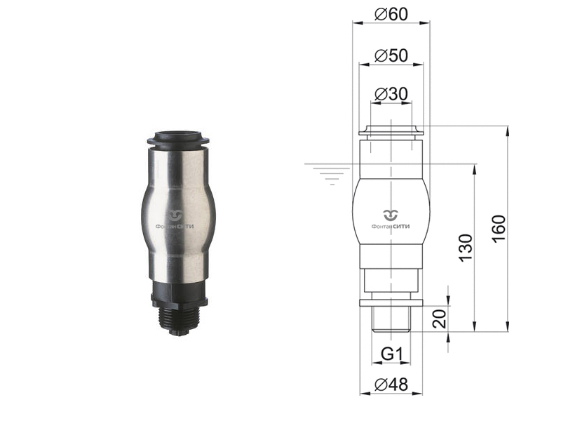 Единственным минусом данной модели насадок можно выделить низкую высоту струи при которой сохраняется качественный водный поток. Это необходимо учитывать при проектировании водной композиции Вашего фонтана.