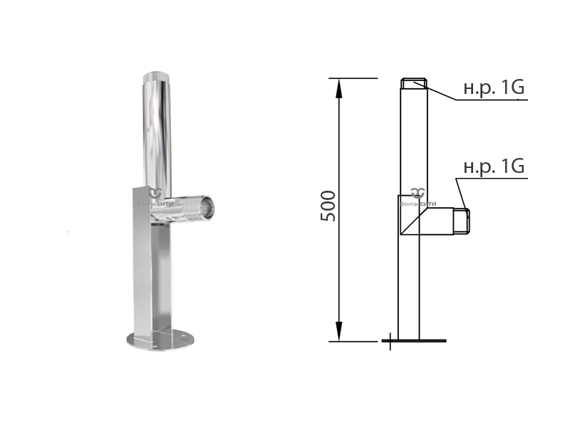 Стойка насадки FC 500 мм. производится из высококачественной стали марки AISI 304 на металлообрабатывающем предприятии Фонтан СИТИ на территории России.
