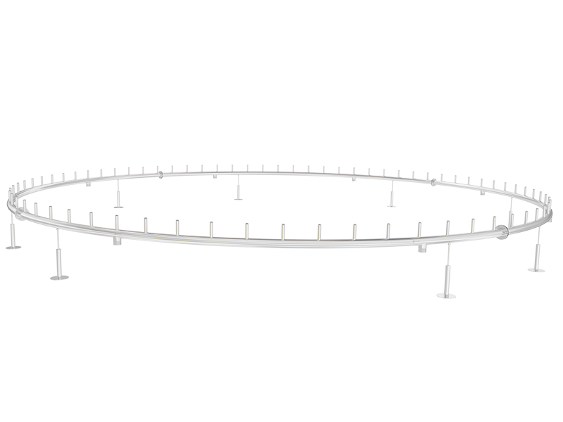 К поверхности кольцевого распределителя привариваются резьбовые патрубки. Патрубки могут быть приварены, как строго вертикально, так и под заданным углом, обеспечивая необходимый наклон струй.