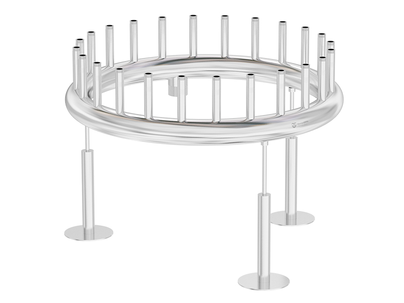 К поверхности кольцевого распределителя привариваются резьбовые патрубки. Патрубки могут быть приварены, как строго вертикально, так и под заданным углом, обеспечивая необходимый наклон струй.