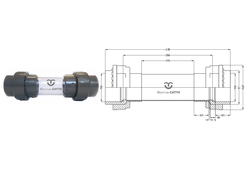 Смотровое стекло муфтовые окончания разборные PVC-U PN16 FC (110)