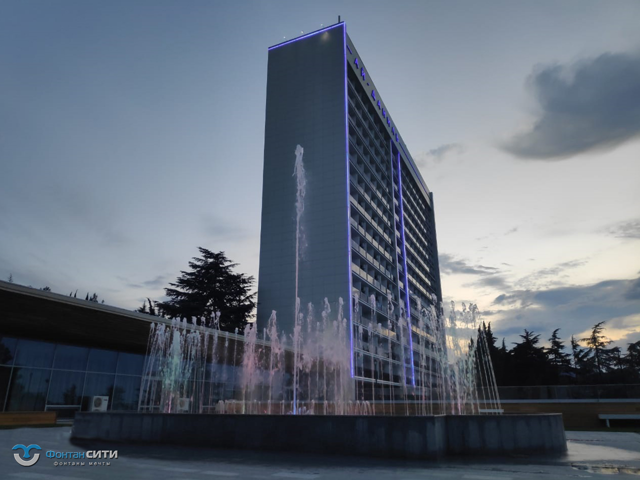 Основной особенностью представленного цвето-музыкального фонтана является его расположение. Усиленная чаша расположена на смотровой площадке (крыше кинотеатра) пансионата "Ай-Даниль".
