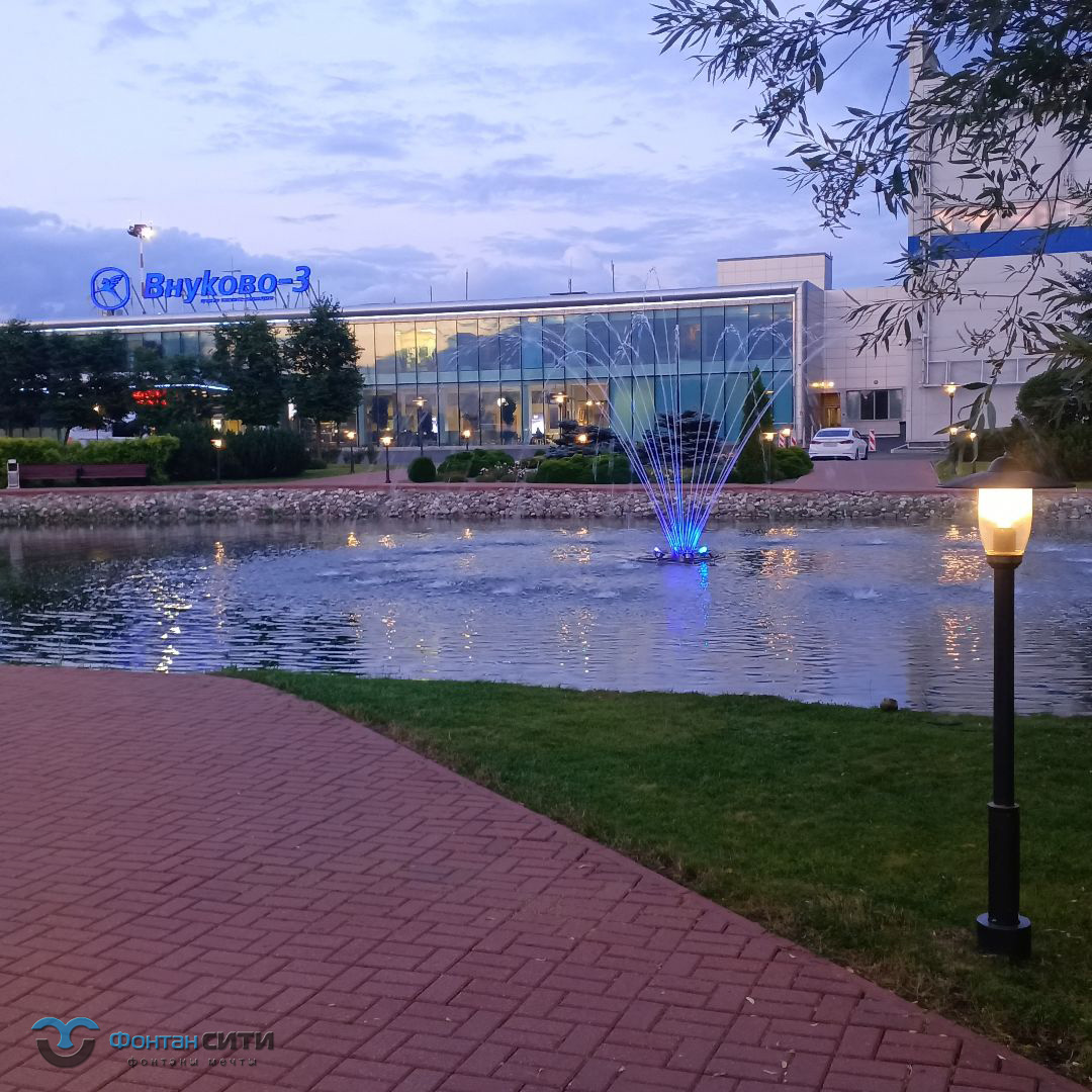 Этот плавающий фонтан оснащен динамической RGBW подсветкой и фонтанной насадкой "Вулкан", что делает его настоящим зрелищем как днем, так и ночью. Фонтан "Аэропорт Внуково-3" представляет собой плавающую конструкцию, которая легко устанавливается на водной поверхности.