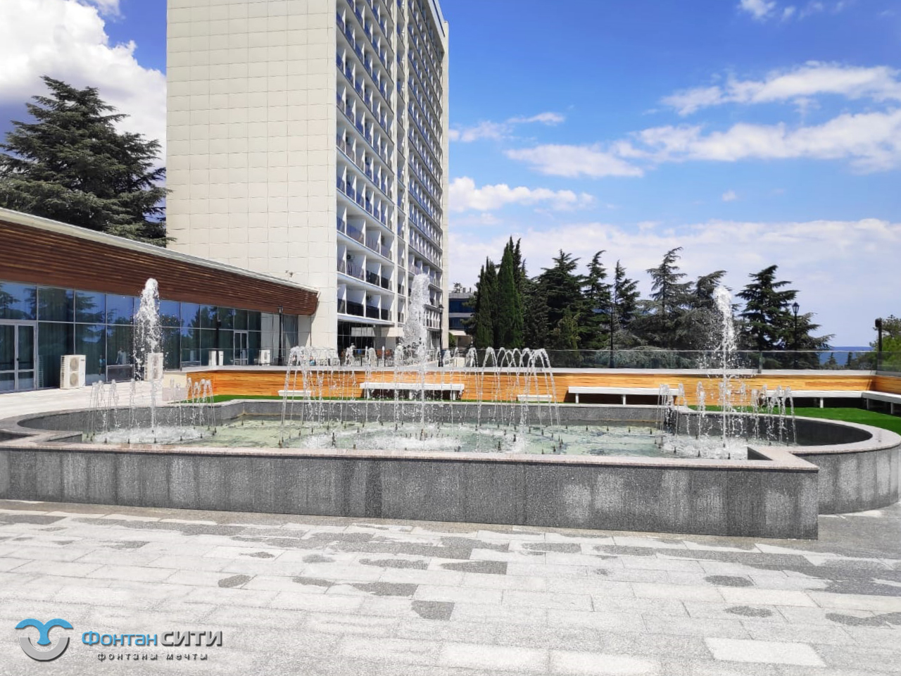 Основной особенностью представленного цвето-музыкального фонтана является его расположение. Усиленная чаша расположена на смотровой площадке (крыше кинотеатра) пансионата "Ай-Даниль".