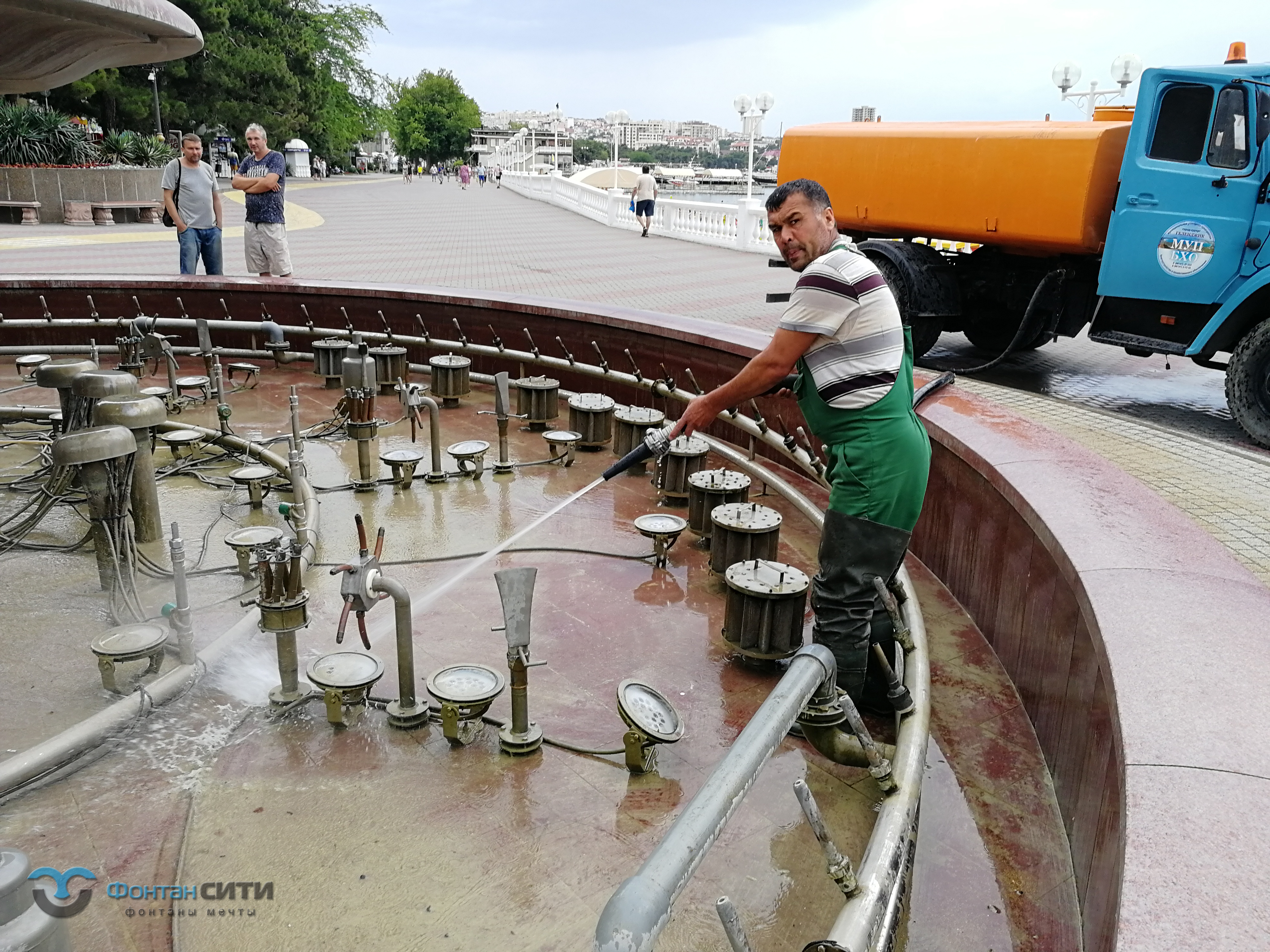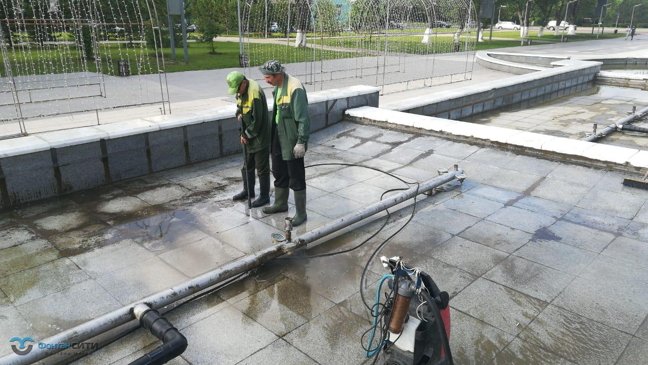 При эксплуатации фонтана необходимо обеспечить обязательное проведение профилактических работ по чистке чаши фонтана, промывке системы фильтрации, водоподготовки, специального фонтанного оборудования от внешних загрязнений (палок, грязи, листвы) и соляных отложений. Необходимо обеспечить фонтан реагентами исключающими цветение воды и размножение болезнетворных бактерий.