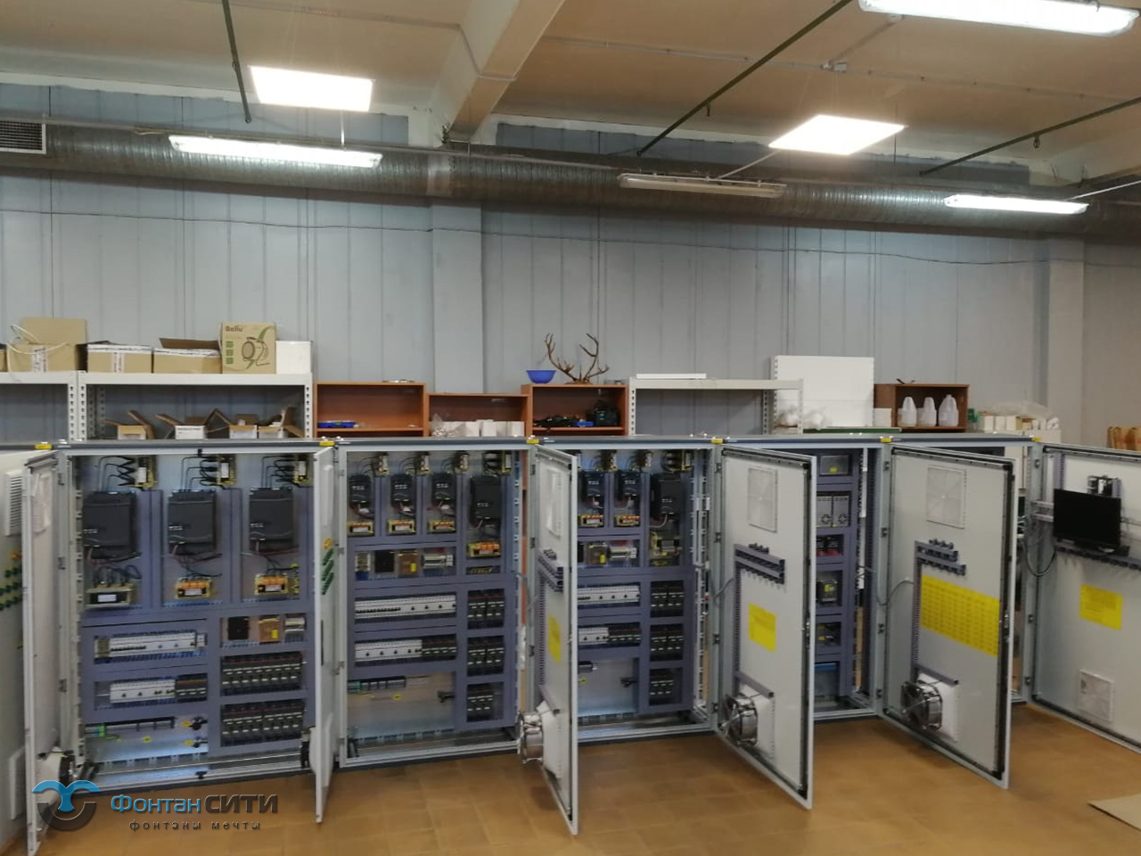 В систему управления фонтаном входят: шкафы управления силовой автоматики и слаботочной автоматики, а также кабельные сети обеспечивающие питание электрооборудования фонтана и общее питание шкафов управления.