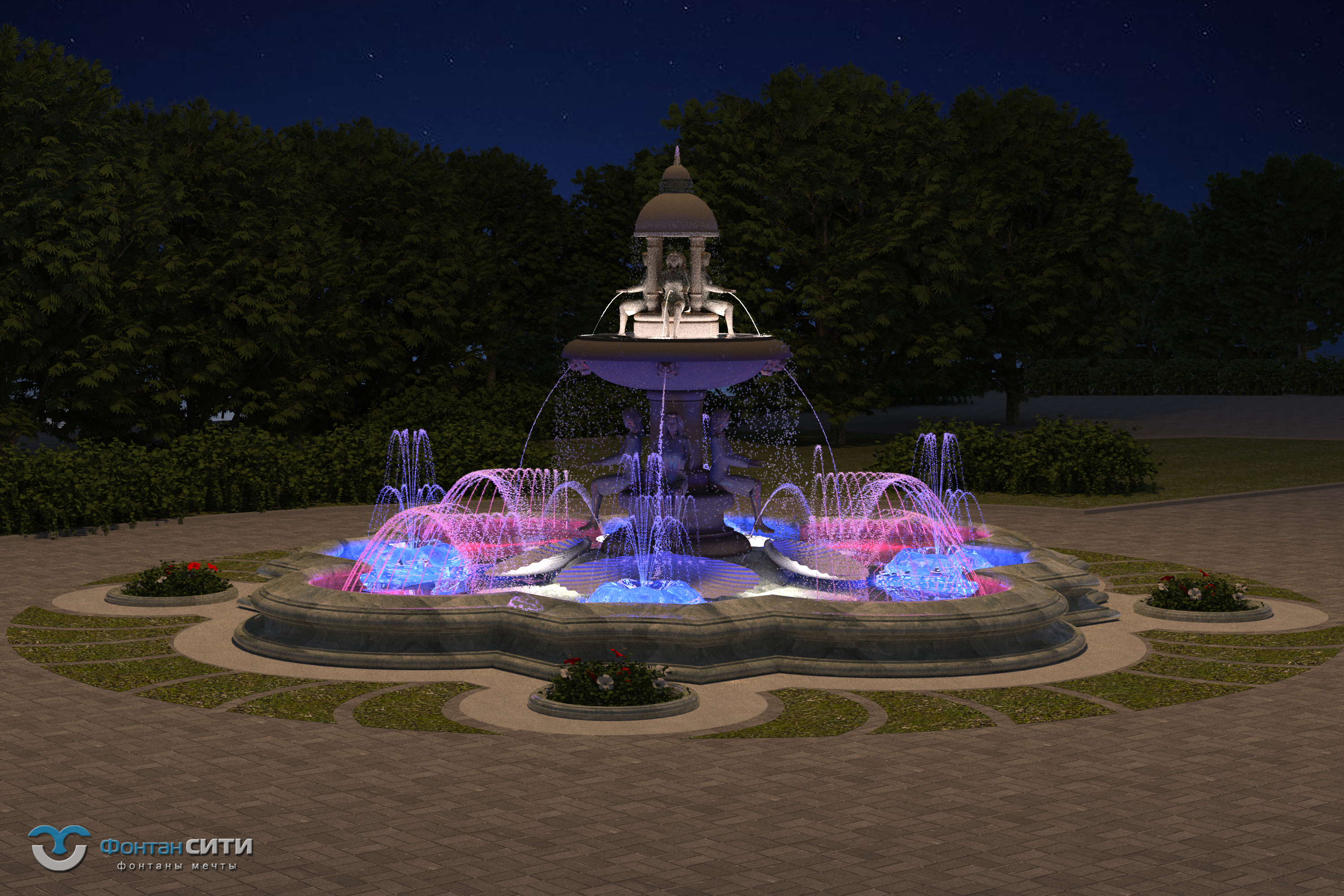 - Дизайн и визуализация. На данном этапе утверждается состав водной композиции, количество струй, их конфигурация, высота и возможная динамика. Конфигурация чаши фонтана (геометрия) облицовка борта и внутренней поверхности. Материалы облицовки и технология их монтажа. Элементы экстерьера, прилегающие к фонтану на участке благоустройства. Количество приборов освещения, цвет свечения, динамика и угол вторичной оптики обеспечивающий наилучший эффект засветки различных водных композиций. Все утвержденные эффекты реализуются в виде модели или анимированного видео ролика.